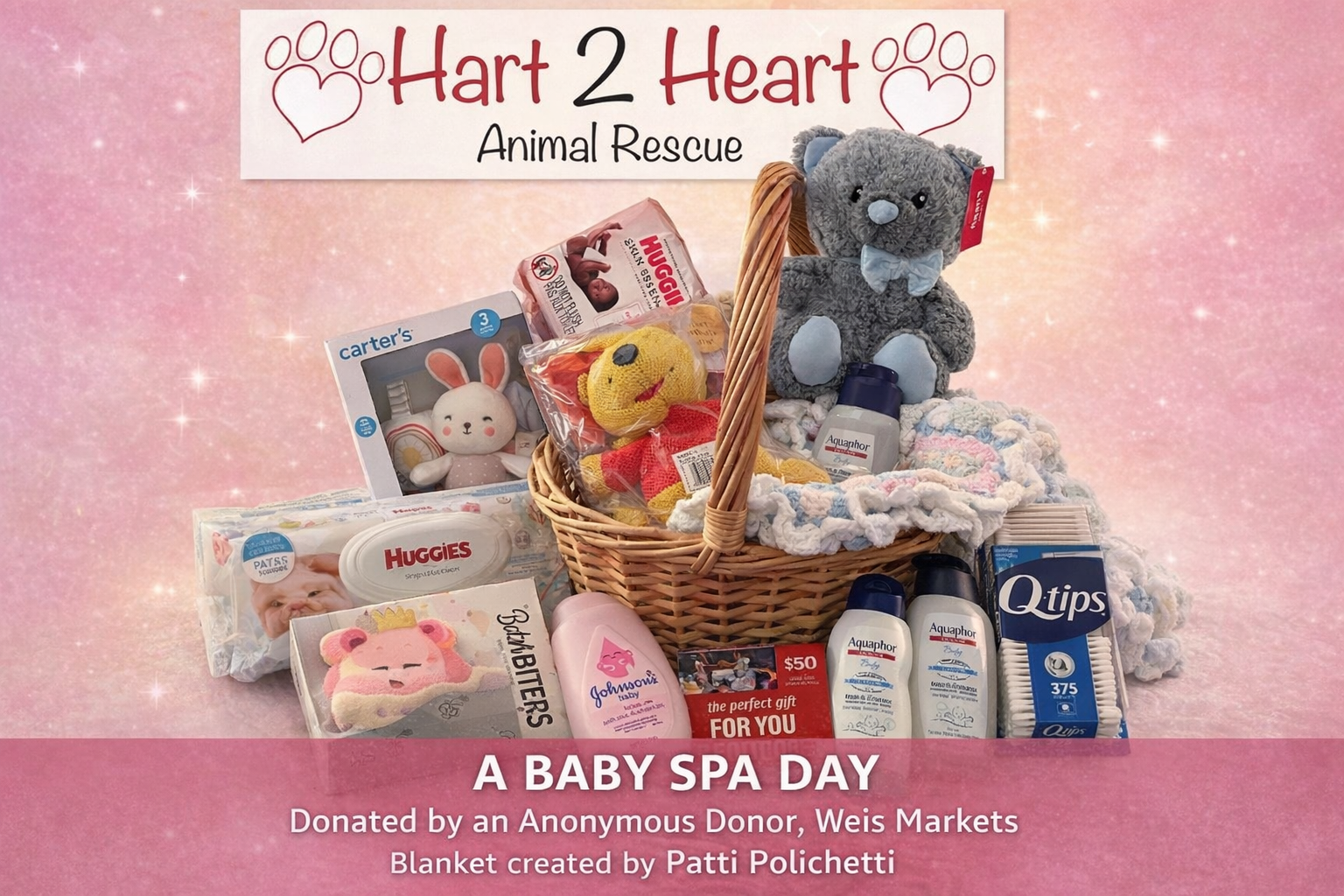 Basket 2: A Baby Spa Day Donated by an anonymous donor &Weis Markets, Blanket created by Patti Polichetti. Valued at $150
