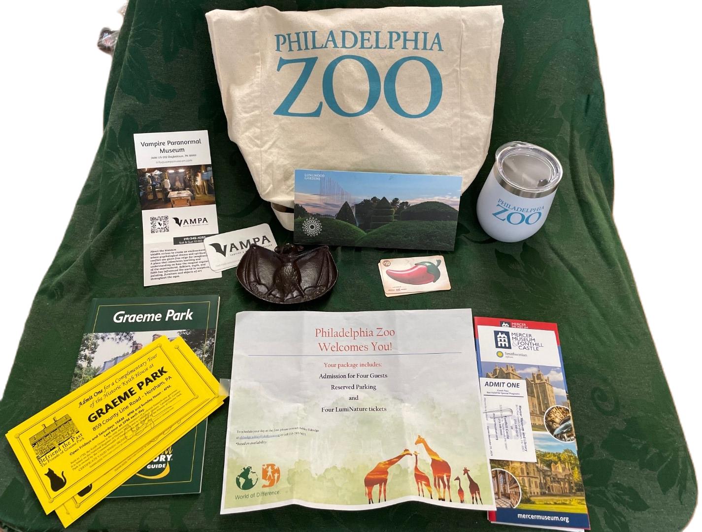 Donated by Philadelphia Zoo, Graeme Park, Vampa Museum, Mercer Museum, Longwood Gardens, Valued at over $400+